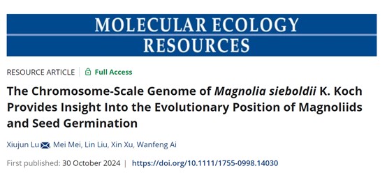 近日,Molecular Ecology Resources在线发表了乐竞体育(中国)官方网站陆秀君教授团队题为“The Chromosome-Scale Genome of Magnolia sieboldii K. Koch Provides Insight Into the Evolutionary Position of Magnoliids and Seed Germination ”的研究论文,报道了天女木兰染色体水平参考基因组,验证了木兰科植物的进化地位,发现木兰科植物起源于真双子叶植物和单子叶植物分化之前,RNA-seq分析鉴定了控制种子休眠和萌发的关键基因及途径,揭示了FAR1(FAR-RED IMPAIRED RESPONSE 1)基因家族不同成员参与种子萌发的复杂过程。