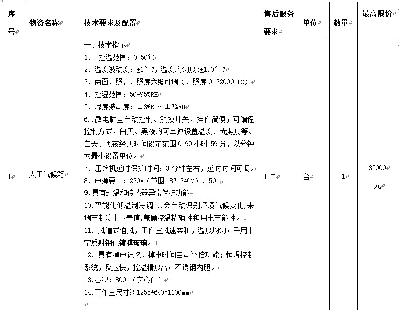 我学院拟对一人工气候箱进行询价采购,欢迎广大供应商参与报价。