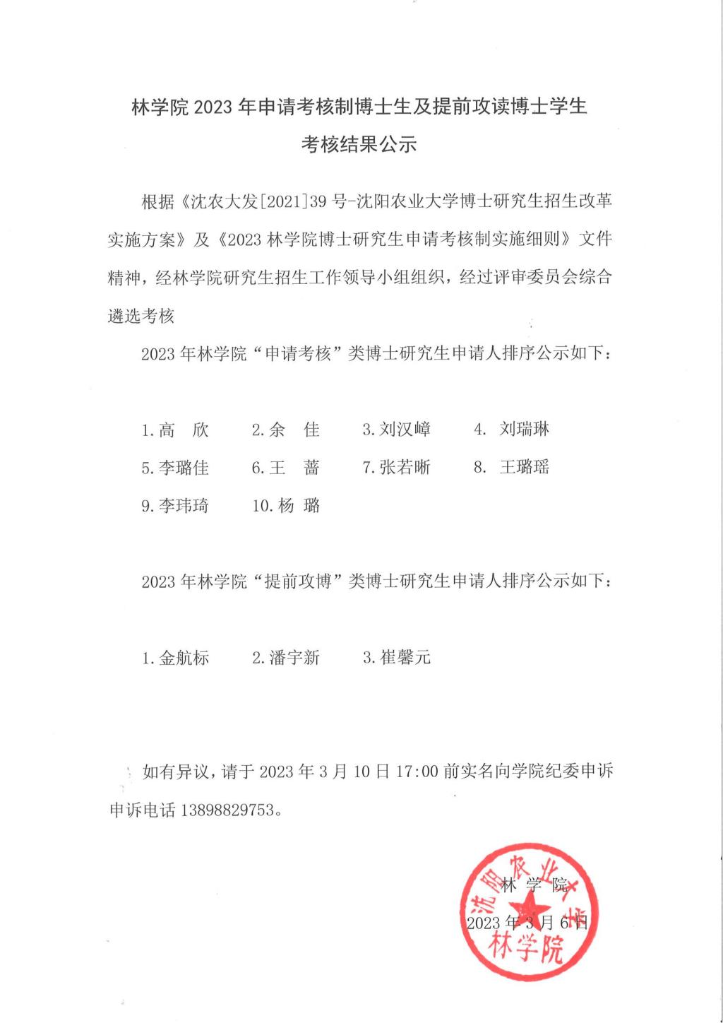 林学院2023年申请考核制博士生及提前攻读博士学生考核结果公示