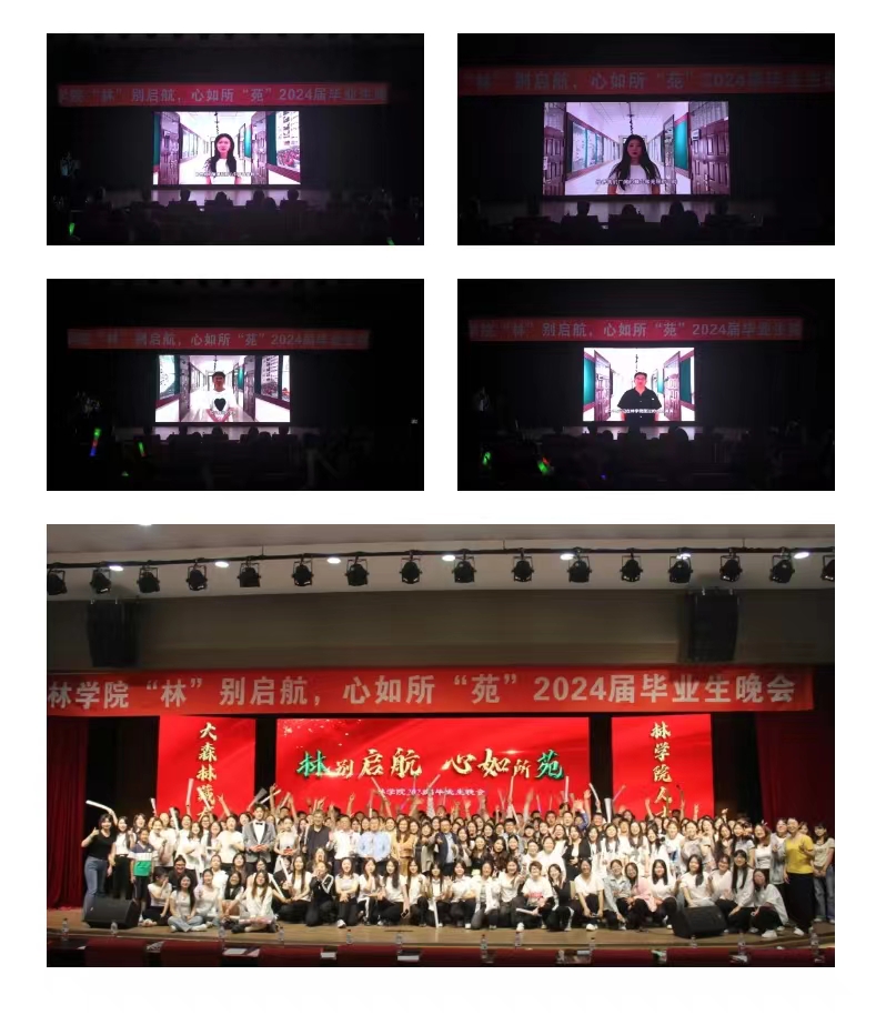 窗外蝉鸣是离别倒数的钟声,在熟悉的校园留下属于我们青春的回忆。6月7日晚18:00,林学院于沈阳农业大学艺术中心举办了“林别启航,心如所苑”毕业生晚会。林学院党委书记杨宇老师,院长王玉成老师,院党委副书记杜杰老师,副院长张智老师,副院长刘平老师,副院长高慧淋老师,20级林学三班班主任朱文旭老师,院团委书记、20级本科生辅导员胡凯老师,研究生辅导员任亚敏老师,23级本科生辅导员王秋凝老师,22级本科生辅导员王天宠老师出席本次晚会。林院师生欢聚一堂,共同观看本次晚会,度过这个难忘的夜晚。